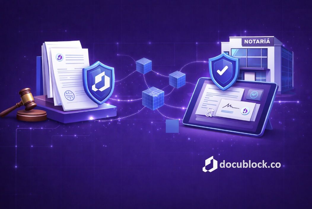 Docublock integra blockchain como una capa de seguridad jurídica, aplicada específicamente a la gestión documental legal y notarial.